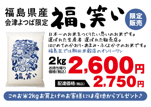 会津よつば農協限定の 「福、笑い」 お米を一度食べてほしいので、